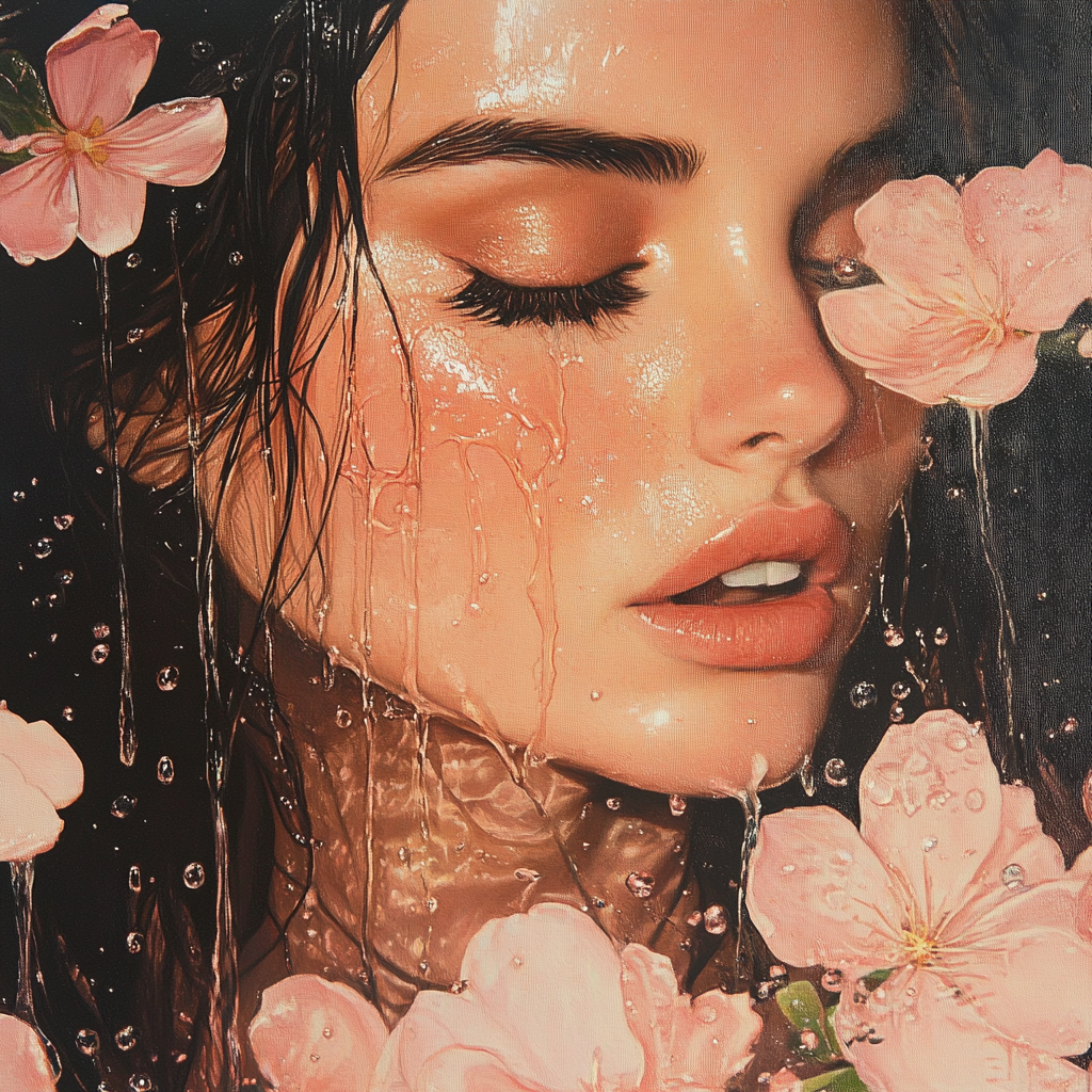 Pretty When I Cry is a poignant portrayal of resilience and beauty in vulnerability. The delicate flowers against the shimmering raindrops mirror the figure's ability to remain graceful and strong in moments of emotional release. This piece is a celebration of finding light even through tears.